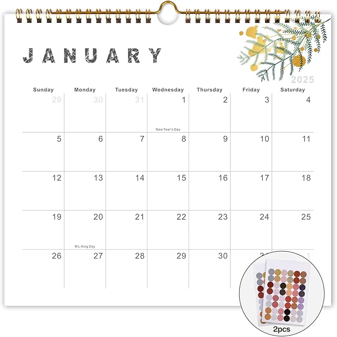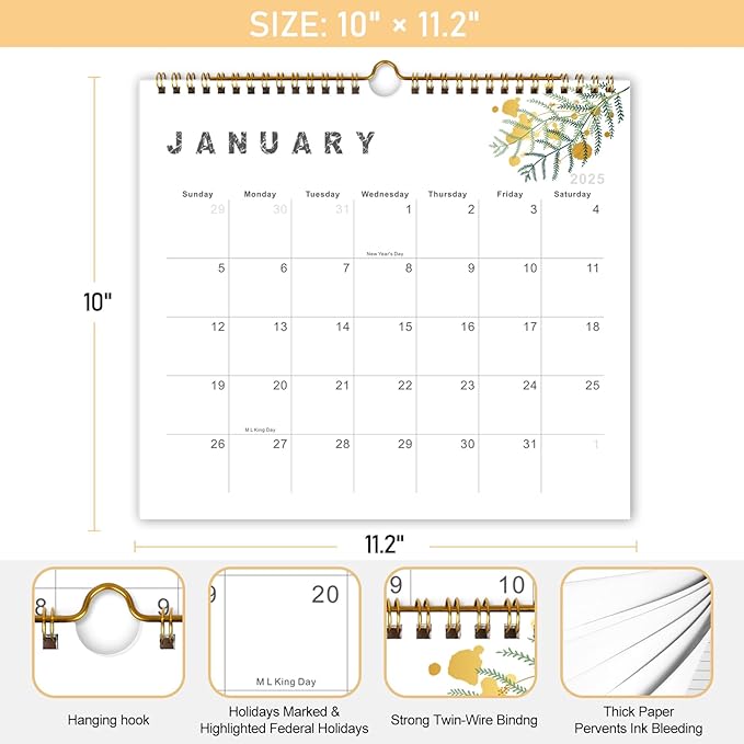 Lbylyhxc 2025 Calendar - from January to December 2025, 2025 12-month wall calendar, 10 x 11.2 inches, heavy paper, suitable for New Year and Christmas Presents (gold leaves)
