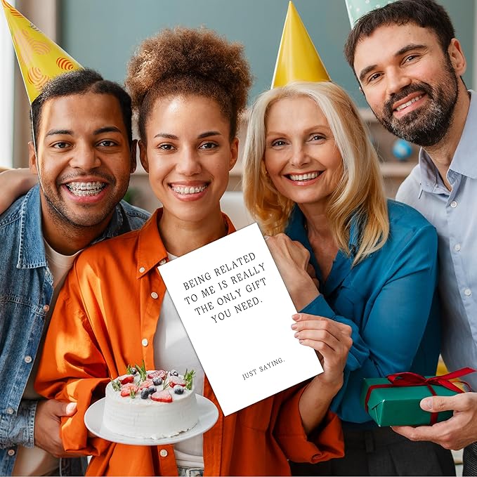 - Funny Birthday Card-- "Being Related to Me is Really the Only Gift You Need, Just Saying" express your best wishes to your brother sister cousin or family member