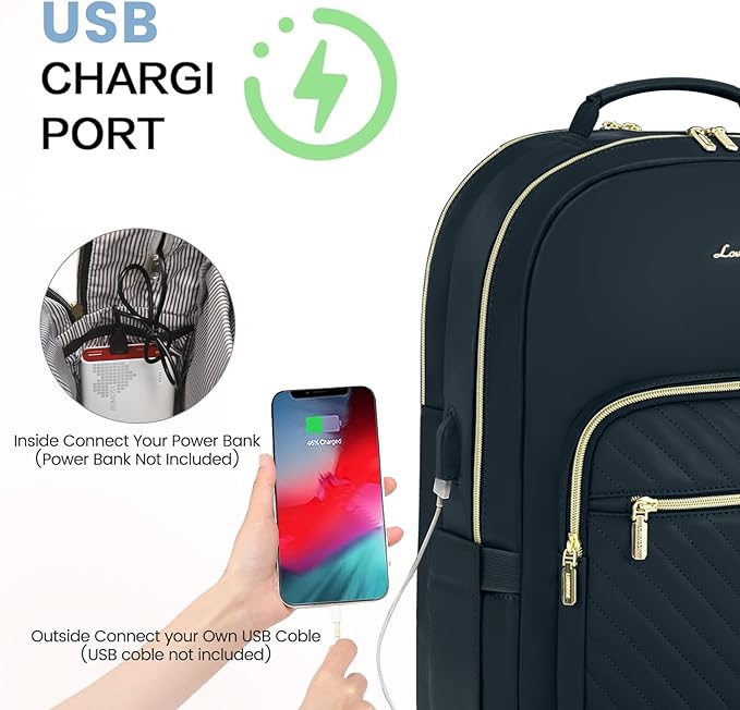 - 【Quilted Travel Backpack Airline Approved with USB Port】: Perfect size to fit under the seat on airplane. The luggage strap allows the quilted backpack fit on luggage/suitcase for easier carrying. With inside charging cable and outside USB port,the cute backpack provides a more convenient way to charge your devices. Back hidden anti theft pocket sits up against the wearer's body,protect your valuable items from thieves.
