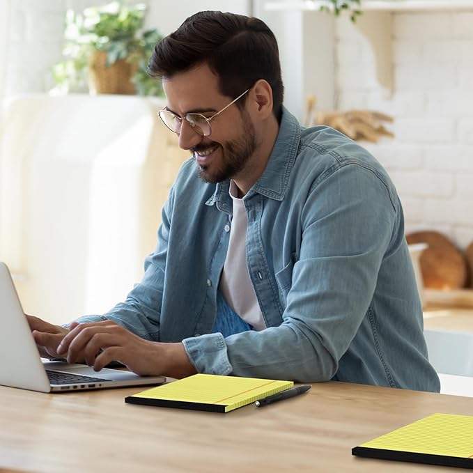 - 【Simple & Effective】The classic yellow writing pads 5x8 format long preferred by attorneys and professionals gives you quick access to notes and lists. These yellow memo pads 5x8 in for work are easy to write on and won' t bleed through. The 5x8 inch note paper pads perfect for home office organization, classroom organization, a desk notepad, meeting notes, school supplies for college students, and other stationery needs.