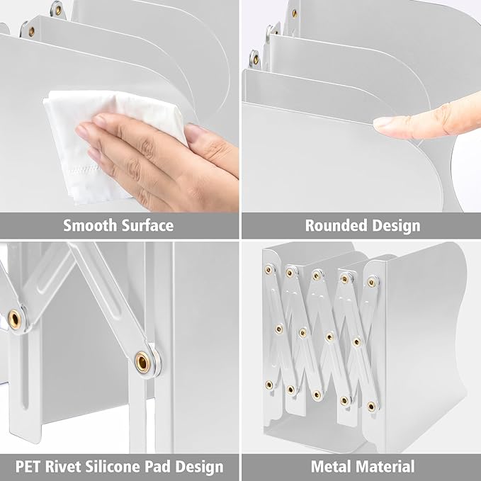 - Easy to Classify and Independent Use: The adjustable bookend have 3 grids together, so different kinds of books or notebooks can be classified into different grid to keep your books or desk tidy and clean.