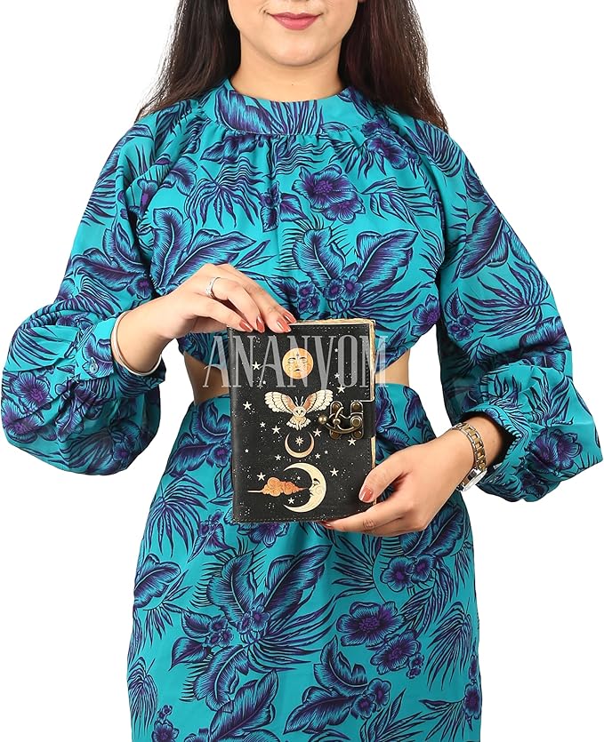 - Premium Quality Leather: Made from high-quality, eco-friendly leather, this black leather journal is designed to last. The sun and moon embossed design adds a unique, vintage touch.