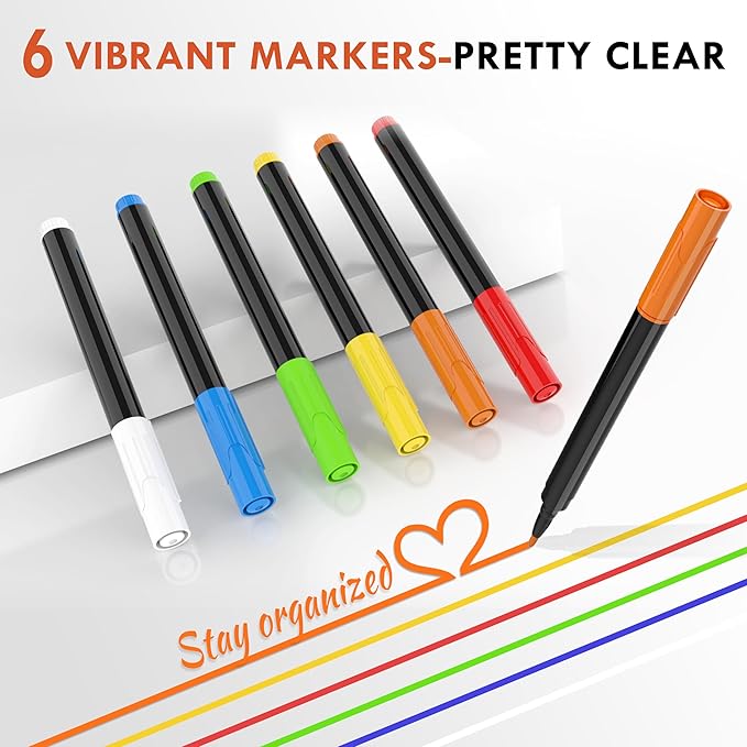 - γ6 π½ππππππ π΄ππππππ-πΌππππ πͺππππ πΎππππππ,π¬πππ ππ π¬ππππγThe magnetic calendar for refrigerator dry erase board set come with 6 markers with 6 vibrant colors are visible on any background, light or dark.The markers with fine pen tip are smooth to write on the acrylic fridge calendar.The handwriting is easy to erase with just a piece of cloth or wet tissue even if it stays for a long time,you can easily wipe it off without leaving any residue