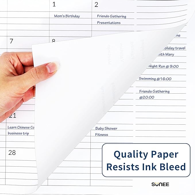 - Premium Quality: Our wall calendar measures 17 inches wide by 12 inches high, an ideal size for daily use. For quick date checking and future planning. Plus, the paper is designed to prevent ink bleed-through and feathering, keeping your pages clean