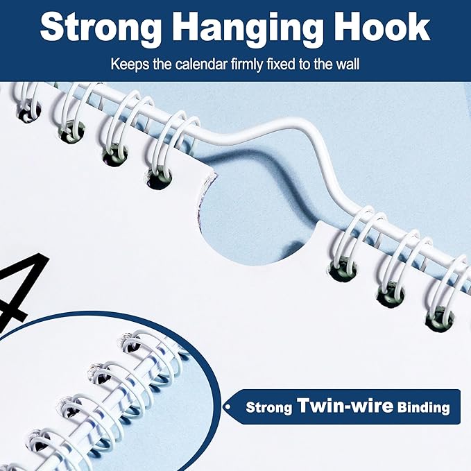 - Spiral Wall Calendar: The twin-wire binding design of this calendar 2025 allows the large size to be hung securely on the wall, making it easy to view and record important events. It can also be hung on the wall as a wall decoration to add to the family atmosphere. Cute and functional