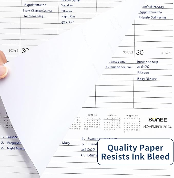 - Non-bleeding Paper: The paper of desktop calendar 2025 has a unique design and looks motivated. Writing with a pen on the paper is smooth without ink jamming or bleeding through. When the month has been recorded the pages can be turned along the white wire without tearing them out