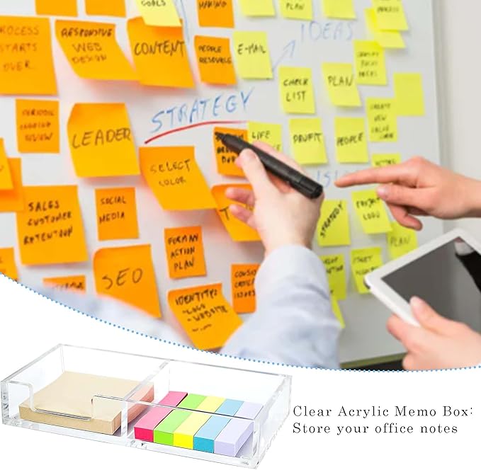 - Transparent Design: The clear acrylic sticky note holder for desk is modern and formal in appearance, which will show your taste, besides the clear design are convenient for you to notice the amount of sticky notes left in case of shortage, easy access