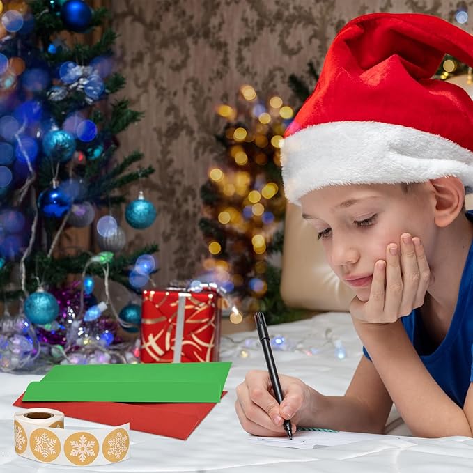- Elegant design: these envelopes are red and green, which are classic Christmas color, come with kraft paper snowflake stickers, whether the color of the envelopes or the pattern of the stickers are full of winter Christmas breath
