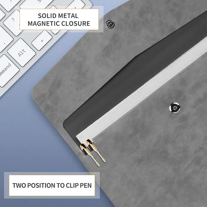 Toplive Document File Folder, Waterproof Thin PU Leather A4 Envelope Folder File Document Organizer Storage Case, Filing Envelope Folder with Magnetic Closure, Ash Gray
