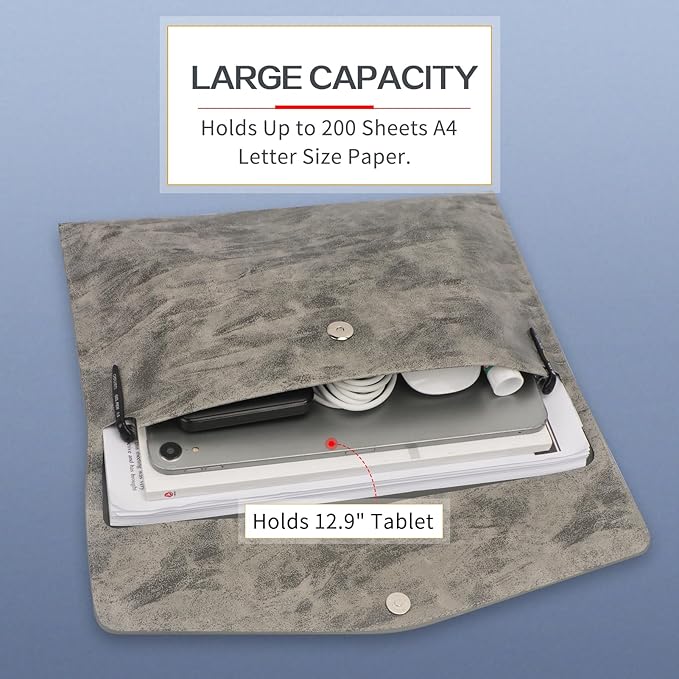 - Stylish & Portable: Toplive A4 Size Envelope Folder measuring 12.9x9.6 inches, easy to take in hand or in your backpack. Classy ash gray and simple stylish design help you to make a professional impression in conferences, interviews or negotiations