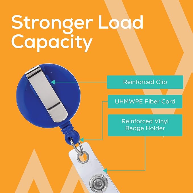 - 【NON-BREAKABLE CORD】 27.5" UHMWPE fiber cord which is the strongest man-made fiber in the world. 1.4x stronger than Kevlar, 5x stronger than Nylon. Ultimate bendable and non-breakable than steel wire. Unlock doors and access office is a breeze with this retractable badge reel.