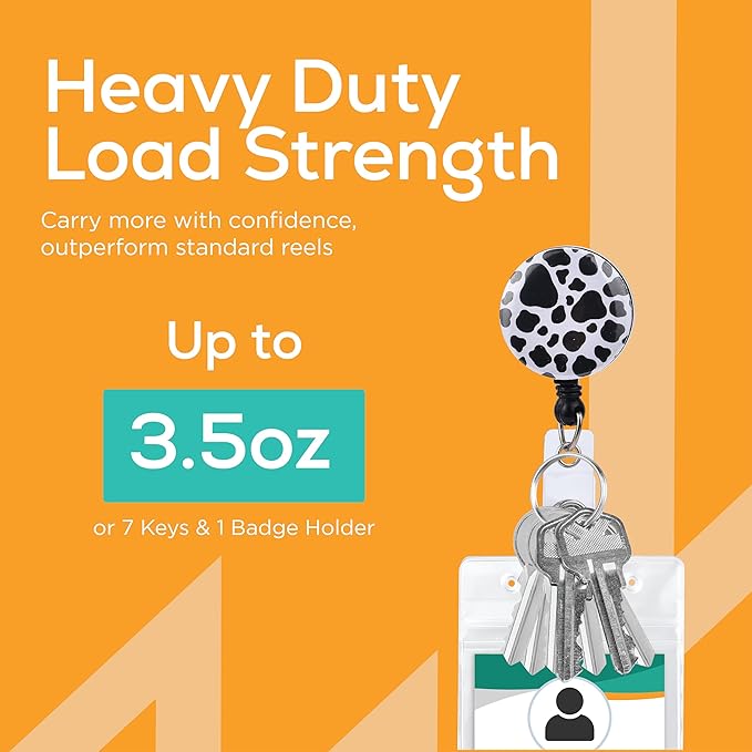 Will Well Badge Holders with Belt Clips for Securing onto Pockets and Purse Straps, with Retractable 27.5" UHMWPE Fiber Pull Cords, Strong Build with Fun Designs - 2-Pack, Cow Print