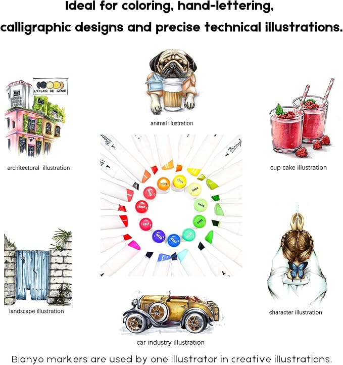 - Versatile Applications: From coloring books to architectural sketches, our Bianyo Alcohol Markers Set offers endless possibilities for artistic expression. Let your imagination run wild as you bring your ideas to life with precision and flair.