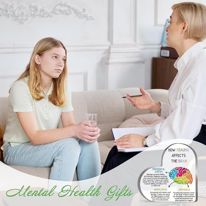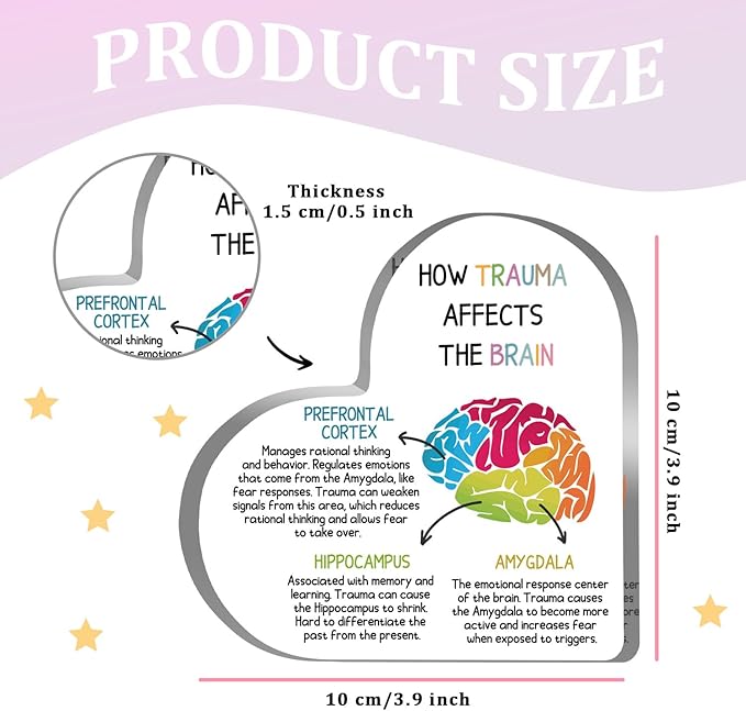 Mental Health Desk Decor, Positive Affirmations How Trauma Affects the Brain Acrylic Heart Gifts Decorations for Social Worker Therapy School Counseling Office Desktop Art Decoration