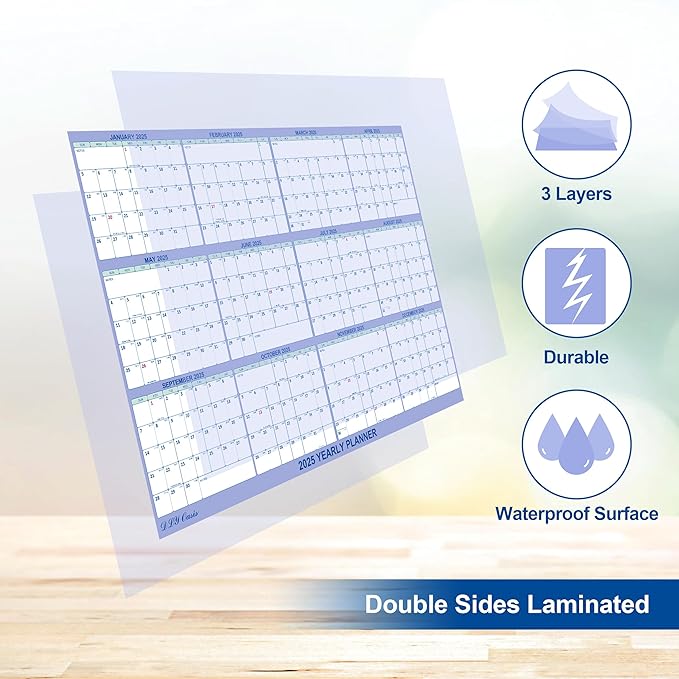 - ✅Premium Laminated Paper: This calendar is made of 200g thicker paper and features a waterproof surface that works great with wet or dry erase. You can wipe it off easily using dry or wet markers. Whenever you want to change your plan, just wipe it off and write down your new ideas.