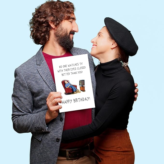 - Humor Birthday Card-- With "No One Watches TV With Their Eyes Closed Better Than You" printed on the cover, this fun joke birthday card is sure to give the him her a good laugh