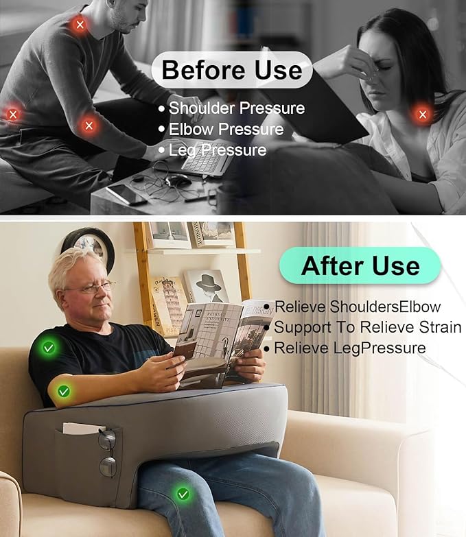 - Extra Large Reading Pillow: This Lap pillow enhances your reading experience. The built-in armrests provide excellent arm support, allowing you to comfortably immerse yourself in your favorite book while maintaining a relaxed posture