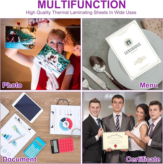 - Application:Perfect for protecting certificates,signs,photos,awards,calendars,kids artworks. It can seal and protect your documents it can be used in classroom, home and office. Compatible with all thermal laminator machine brands