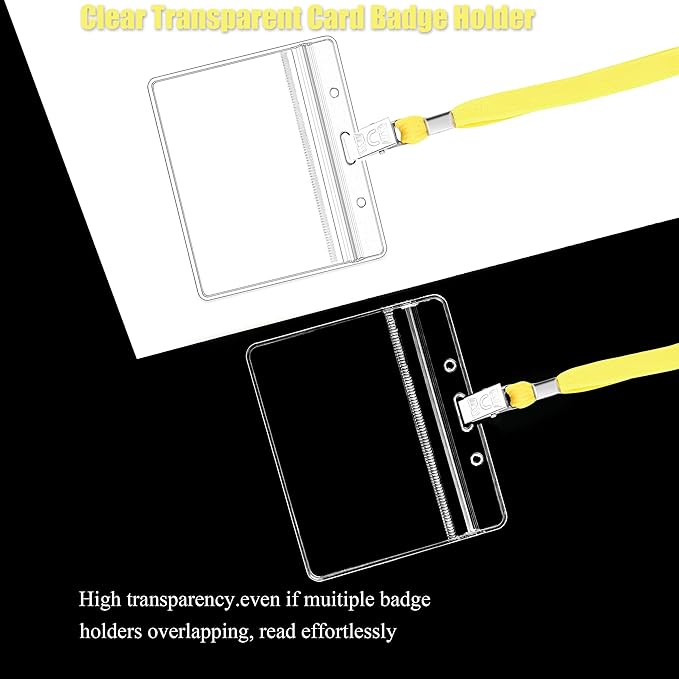 100Pcs Clear Plastic Horizontal Name Tags Badge ID Card Holders and 100Pcs Lanyards with Clip (Yellow)