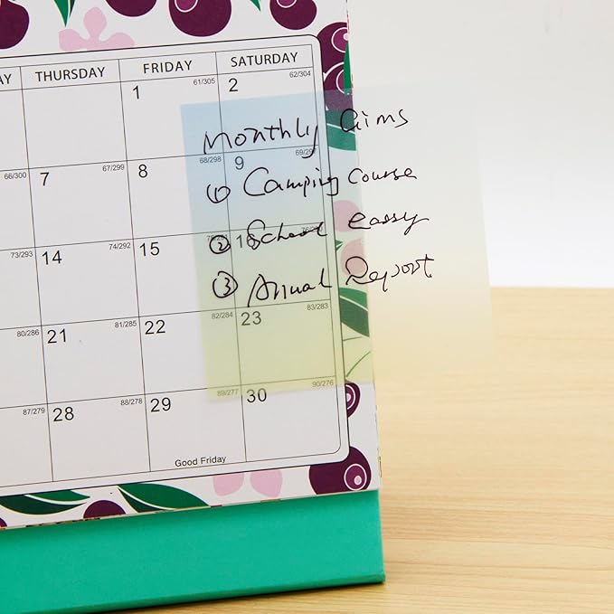 - 📖 【Safety】the sticky notes are transparent made of premier quality of PET material. Adhesive, waterproof, non-toxic, no odor and smooth