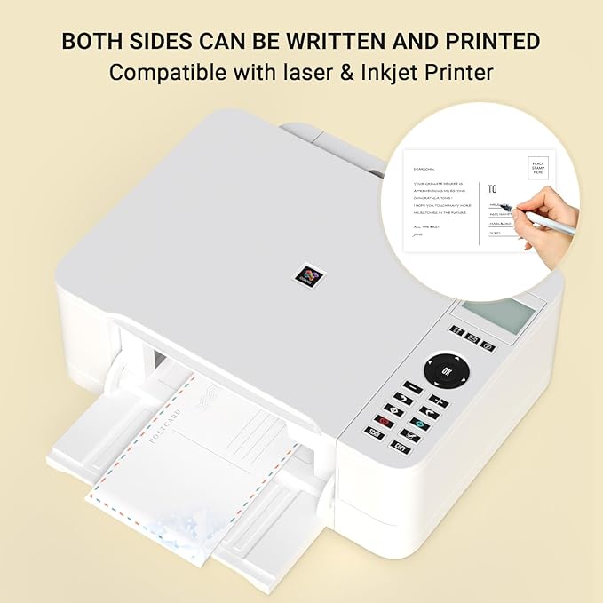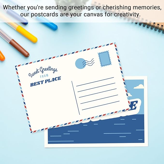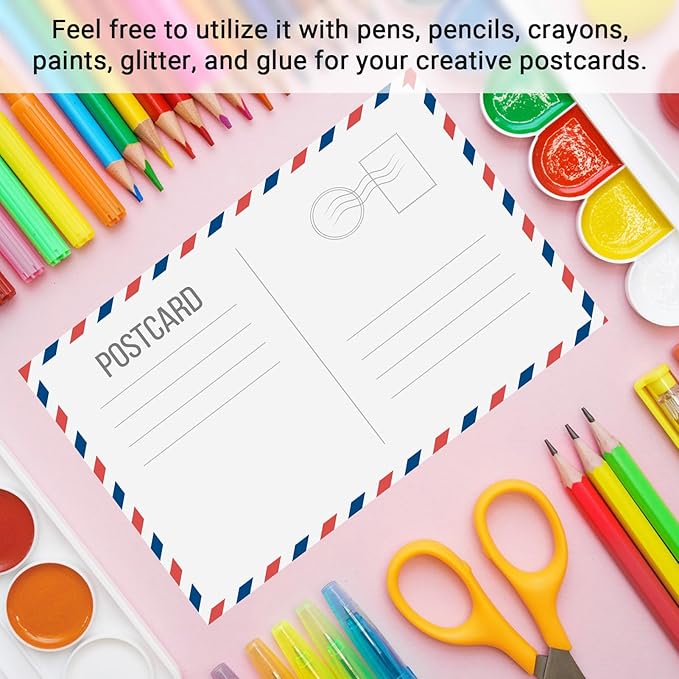 - Smooth Writing: Explore the endless possibilities our postcards offer for self-expression. The smooth texture of the paper allows your pen to glide effortlessly, capturing your thoughts and illustrations with unmatched precision. Whether you choose to use pens, pencils, crayons, printers,or even paint and glitter, these postcards offer an elegant canvas for your words and creative designs.