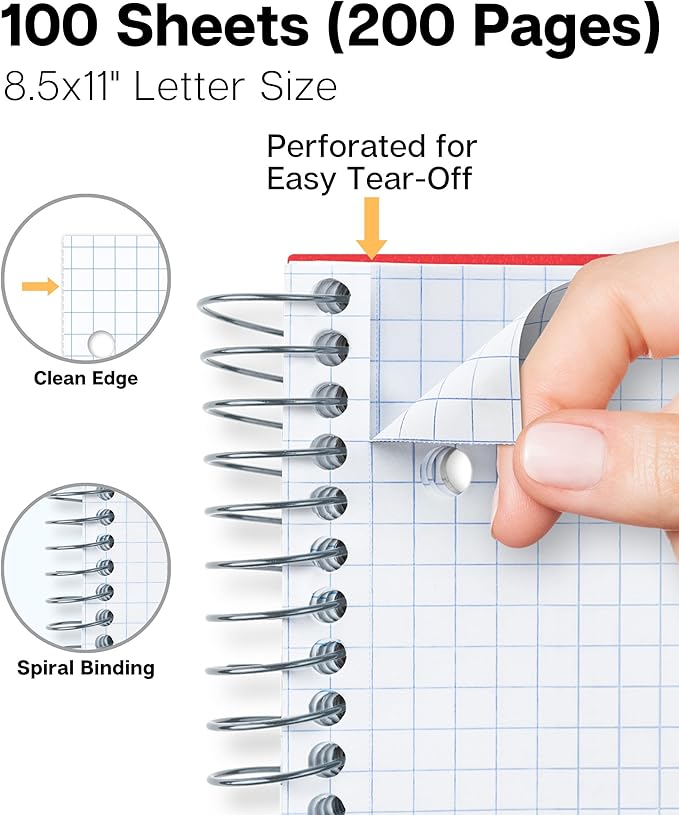 - Graph Ruled Spiral Notebook: Red plastic cover resists moisture, Protects your valuable class notes, assignments, and homework.