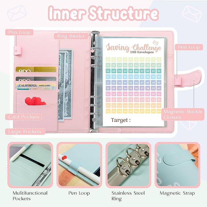 - 【100 Envelopes Challenge Binders 】 Dive into the 100 days money saving challenges and make daily savings a habit! Reach your financial milestones by filling up each envelope every day until you achieve your goal. It's an easy and fun way to stay committed to your savings plan.