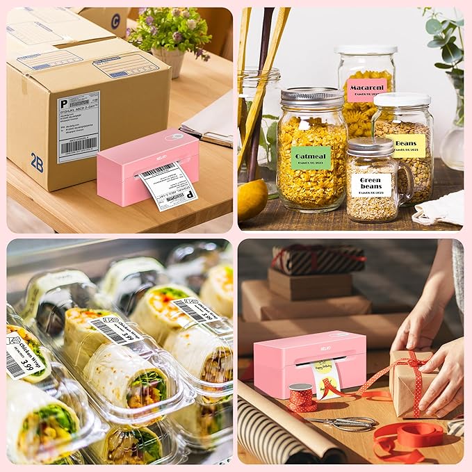 Nelko Bluetooth Thermal Shipping Label Printer, Wireless 4x6 Shipping Label Printer for Shipping Packages, Support Android, iPhone and Windows, Widely Used for Amazon, Ebay, Shopify (Pink)