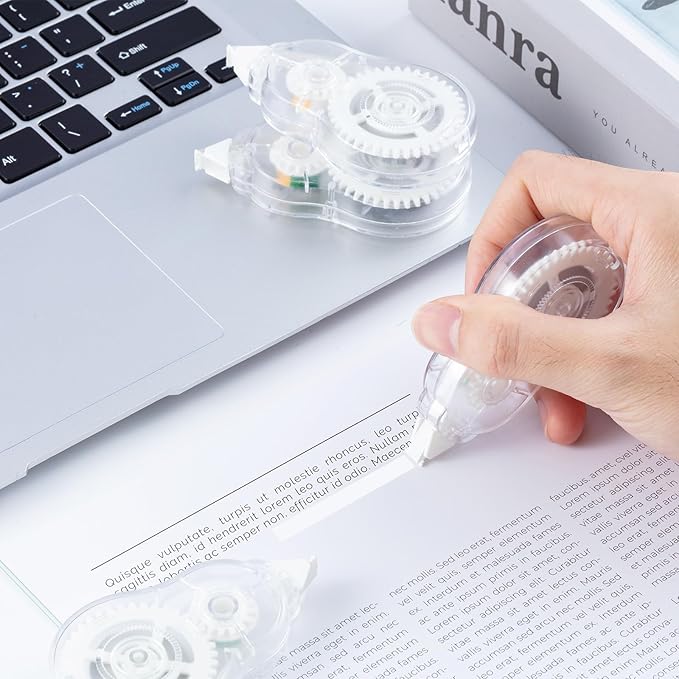 - 【High Quality】This correction tape's film tape has greater strength and tear resistance, won't damage paper or documents, and won't leave copy shadows. The perfect alternative to traditional liquid correction fluids or correction pens, the tape is neat and less likely to break.