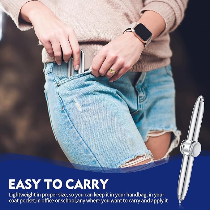 - Wide Applications: the LED light fidget pen can not only be applied as ordinary writing pens, mini flashlight and fun fidget pens, the 3-in-1 functional pens will give you endless fun, besides, they also can be applied as anxiety relief pens to release your working or study pressure, suitable for home, office and school, can be applied as nice gifts to send students, teachers, colleagues and more