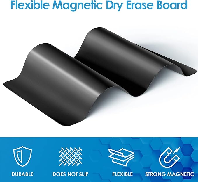 - Strong Magnetic Dry Erase Board: Our magnetic black dry erase board has strong magnetic which guaranteed to stick to any flat metal surface without sliding or falling like other boards and because of it's thickness it does not to make creases when handled. Because of it's nicely finished rounded corners it can be easily removed. It is very flexible and easy to fit on the fridge. (Note:it is not suitable for non-magnetic stainless steel fridge)