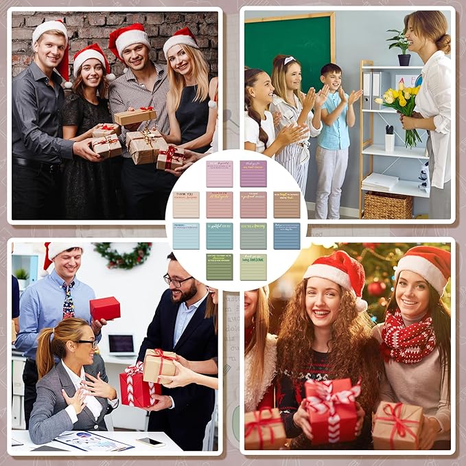 - Quality Material: appreciation sticky notes are designed with self adhesive, strong adhesion, and can be easily pasted on many smooth and clean surfaces, such as books, doors and windows, refrigerators, cabinets, desks, drawing boards, etc.; Moreover, they will not leave behind after removal any sticky residue, odorless and smooth, easy to peel and stick, good adhesion, not easy to remove, bring convenience to your daily work and study, or Christmas sticky notes gift