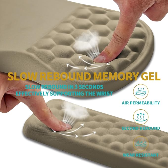 Hokafenle 2 in 1 Ergonomic Mouse Pad Wrist Support & Wrist Rest for Computer Keyboard Set, with Relieve Carpal Tunnel Pain Massage Bulge and Full Memory Gel Design (2In1 Set, Beige)