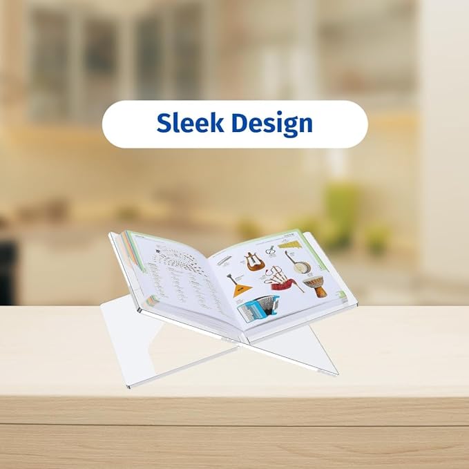 - [Variety of uses] Everyone needs a cookbook holder that doesn't get stained and can hold any book that is put on it. Cookbook holders for kitchen counter should be as elegant and easy to set up as this one is. A clear acrylic book display stand transparent for tablet holder is all you need to free your hands so you can multitask. Our sleek, "X" shaped book stand can also double as a bible pedestal stand.