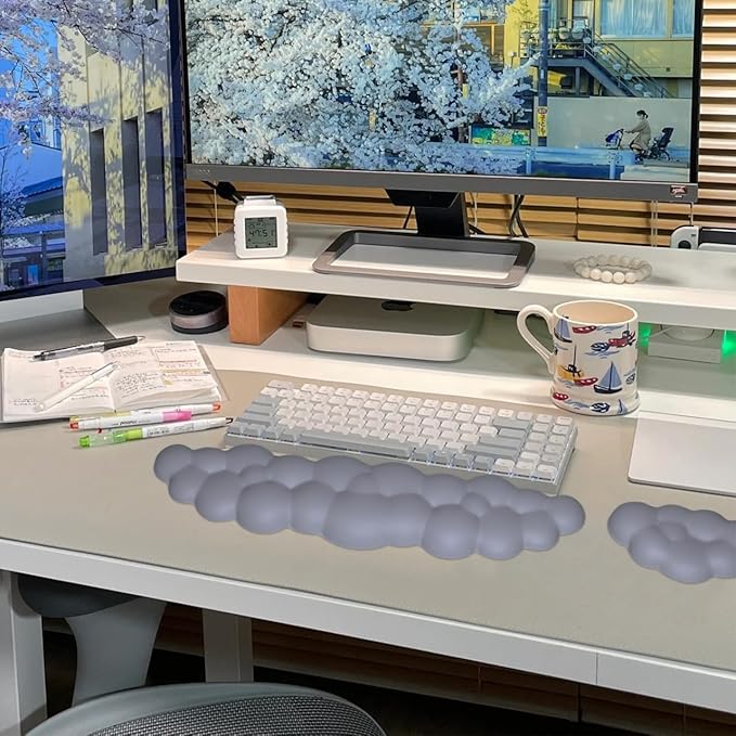- ✔【Cute and Aesthetic Cloud】Included keyboard wrist, mouse rest and cup pad, and the cloud-shaped pad is very unique&good-looking and enhances the user's experience, designed for daily working or gaming