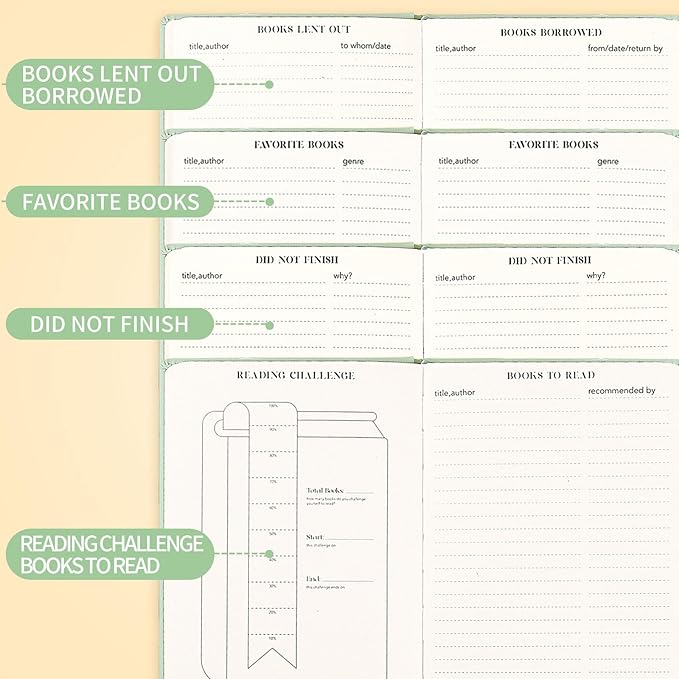 - Multifunctional Design - There is an index preview help you check your reading and rating quickly. Daily reading tracker tracking your reading progress. The challenge of reading inspire you to finish your goals that you set at beginning. Write books you have read and books you borrowed or lent and more.
