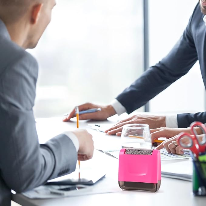 Identity Theft Protection Roller Stamp - Wide Confidential Roller Stamp with 3 Pack Refill Inks for Anti Theft Protection, Confidential Privacy Security, Address Blocker (Rose Pink)