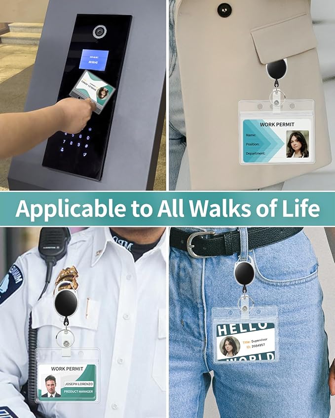 - Retractable Badge Reel: The stainless steel badge reel endures repeated pulls. And its nylon cord can extend up to 24 inches. Quickly swipe your card to make punching in and out faster.