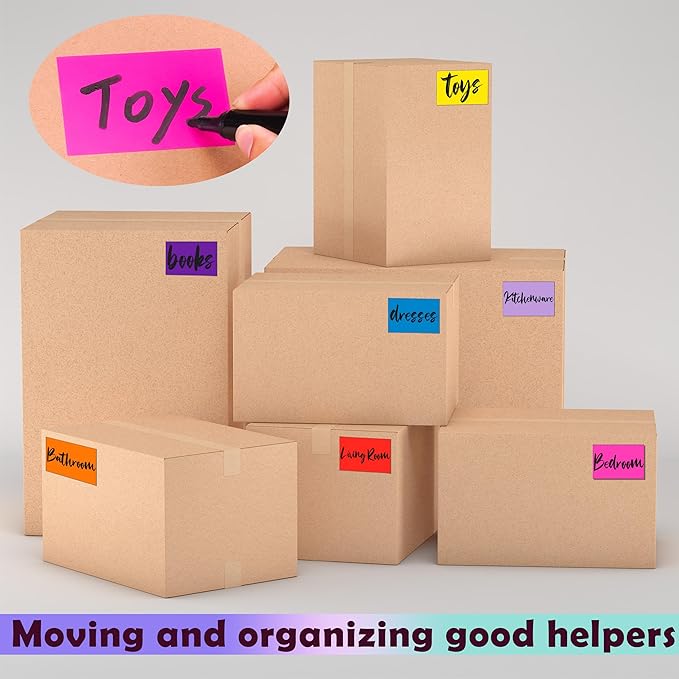 - 【Rectangular Label Stickers Set Include】You will have 480 Pack stickers in 12 bright colors - Red, Rose, Pinks, Tangerine, Orange, Yellow, Green, Fluorescent Green, Sky Blue, Blue, Light Purple, Purple.Each color can be easily distinguished,they are perfect for coding and organizing items.