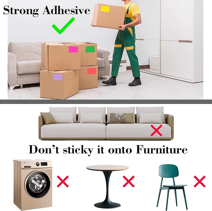 - 【Quality material】The color stickers are made of quality paper material,moving labels color labels is environmentally friendly, the color is bright ,conspicuous and will not fadethe.suitable for making notes with markers, pens or stamps.The strong adhesive bond ensures that the stickers stay in place, even when exposed to moisture, heat, or cold temperatures.