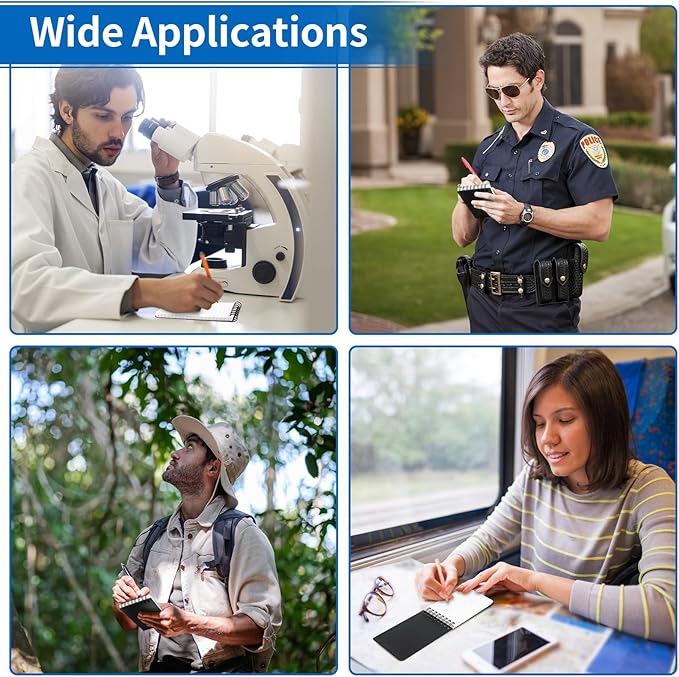 - POCKET SIZE: Waterproof pocket notepad measures 3×5 inches. The small pocket size and sturdy design can be used as a police notepad, golf notebook, diary, memo, field book, or notepad. With a ruler printed on the pocket notebook back