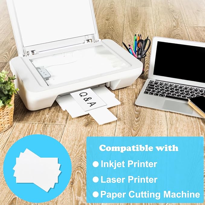 - [Printer Compatible]: The 3x5 white card has same color on front and back. Both sides are compatible with Inkjet and laser printers, can be printed on most printers and no need to worry about smudging or paper jamming. Please check if your printer can handle the paper size and weight before purchasing.