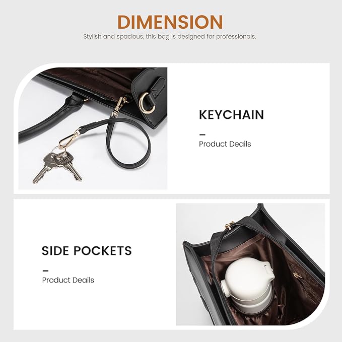 - Multi-Compartment Organization: Featuring a thoughtful multi-compartment design, the work bag includes double side pockets, a padded laptop and iPad compartment, slip pockets, pen slots. Ensures effective organization, making it easy to keep items in order