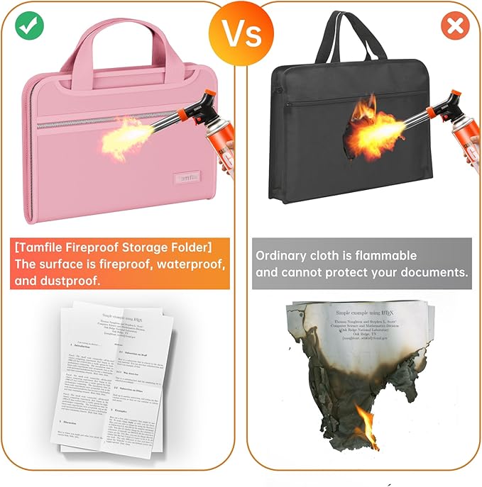 - [Tamfile Fireproof Storage Folder] The surface is fireproof, waterproof, and dustproof. The folder surface is made of fireproof and waterproof upgraded silicone fiberglass fabric, which can withstand temperatures up to 2200°F and has passed SGS testing (UL94 certification). File folders protect valuable items and information. Save and organize your valuable materials, artifacts, important documents, office supplies, and more with our advanced fireproof multipurpose folders.