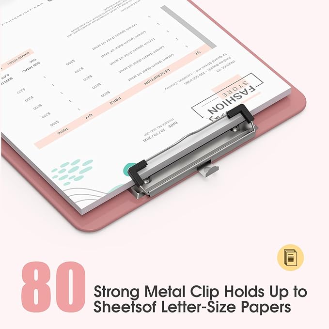 - Easily Stackable: The Color Clipboard use low profile clip of our plastic clipboards makes the bulk clipboards easy to stack. Sturdy metal clip to hold up to 80 letter size / A4 size pages easily and securely in place