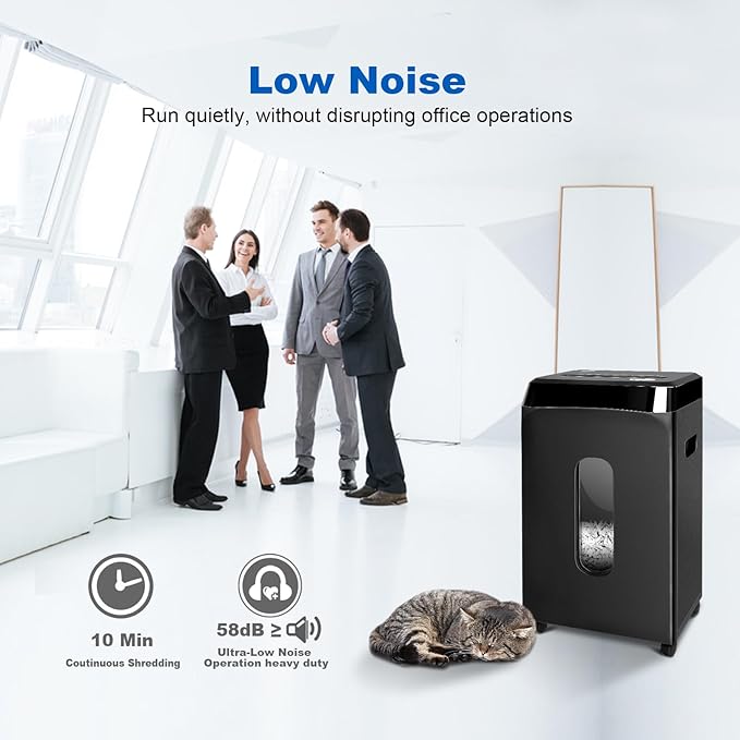 - 【Ultra-Quiet 58dB Operation】 Enjoy peaceful shredding with noise levels as low as 58dB—quieter than a normal conversation. The lightweight 18.1-pound design and 4 smooth-rolling casters ensure effortless mobility between rooms or offices.
