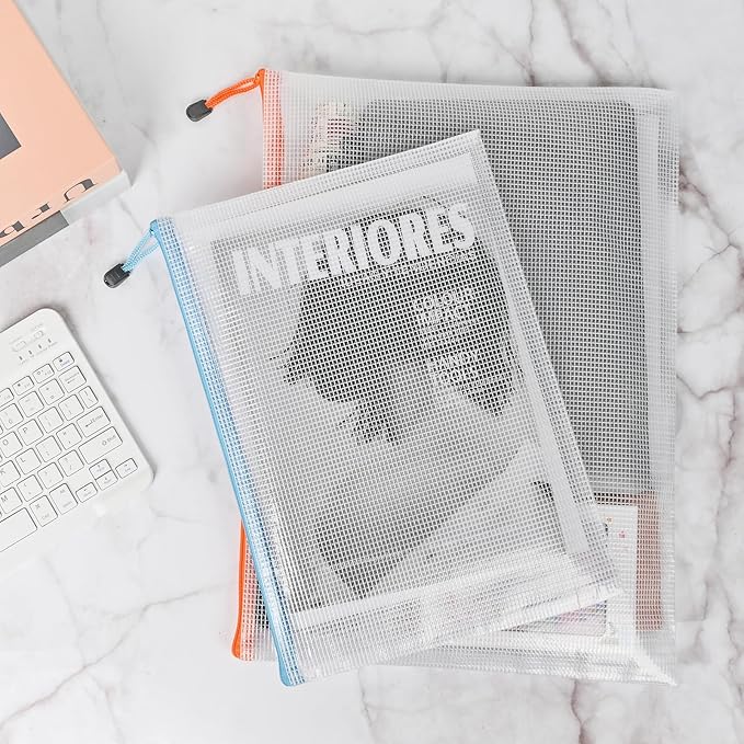 - Zippered Storage Bags are Made of Thick PVC Material. Mesh Zipper Pouches are not Entirely Transparent Clear, But a Translucent White Gridded Pattern that Still Allows You to Easily See Contents.They are Big Enough to Fit a Full Coloring Book and Crayons Inside, or for Organizing Paperwork. They Would Make a Great Car Entertainment Pouch for Younger Children, for Keeping Crafts with Instructions, Books with Paper Notes, etc.