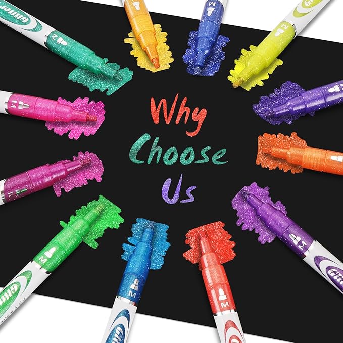 - 【Glitter markers for kids】The super glitter markers are a great gift for family and friends, kids and adults, for Children’s Day, Easter Day, Birthday Party, Christmas, Halloween, Valentine's Day, Mother's Day, Thanksgiving Day, Back to school gifts for kids, New Year gifts for kids.