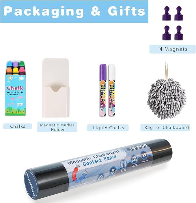 - 2 Pcs Chalkboard: This is more than 2 Pcs chalkboards; it’s a complete kit! You’ll receive chalks, wipes, some small magnets, and magnetic storage boxex. You’re ready to start planning and creating right away.
