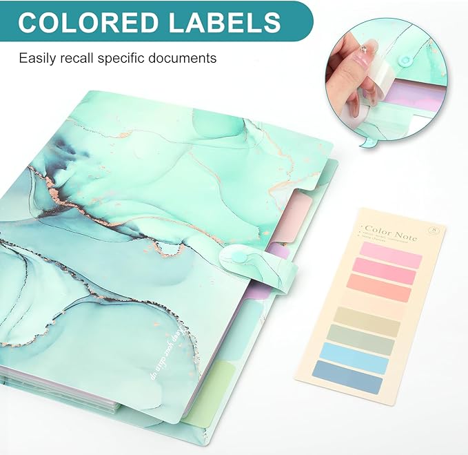 Ddaowanx Expanding File Folder, Letter A4 Size Accordion Plastic File Organizer, 5 Pocket Folders for Documents, Aesthetic Folder with Labels, Paper Organizer for School Office (Green Marble)